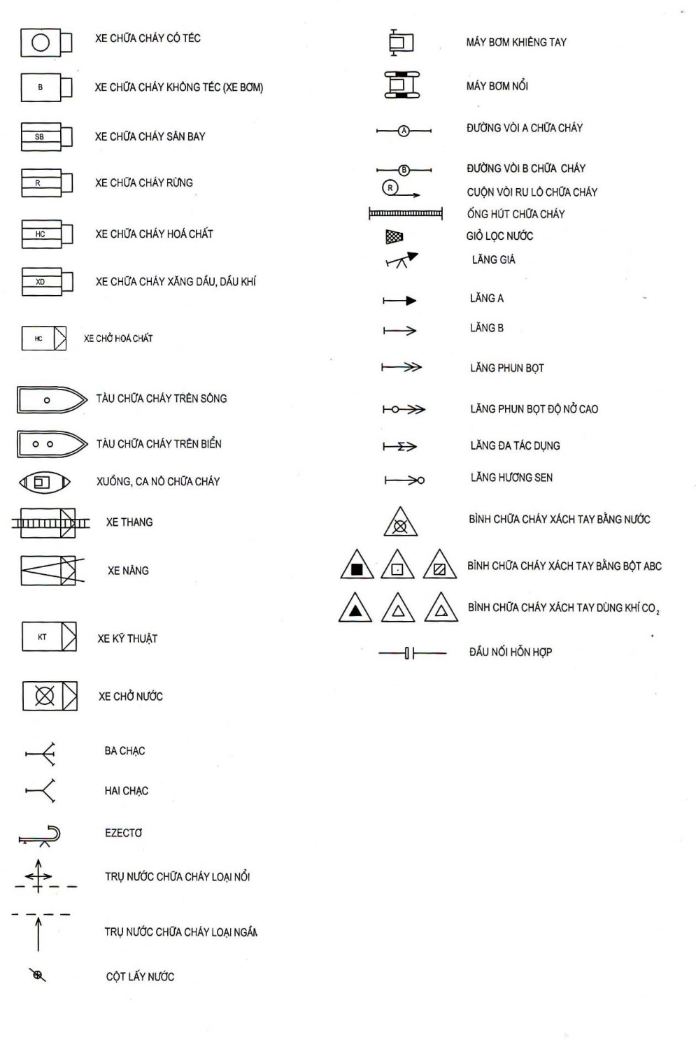 KÝ HIỆU DÙNG TRONG SƠ ĐỒ PHƯƠNG ÁN CHỮA CHÁY